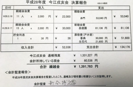 ・H28/3/19 決算・親睦会費 22,000円(11名)