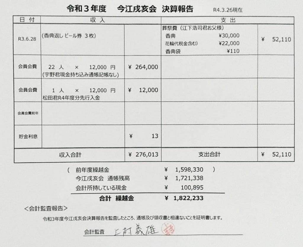 会計:上村君(補佐:前年度会計 菅沼君)