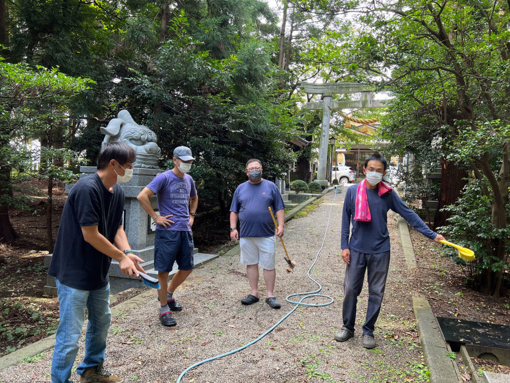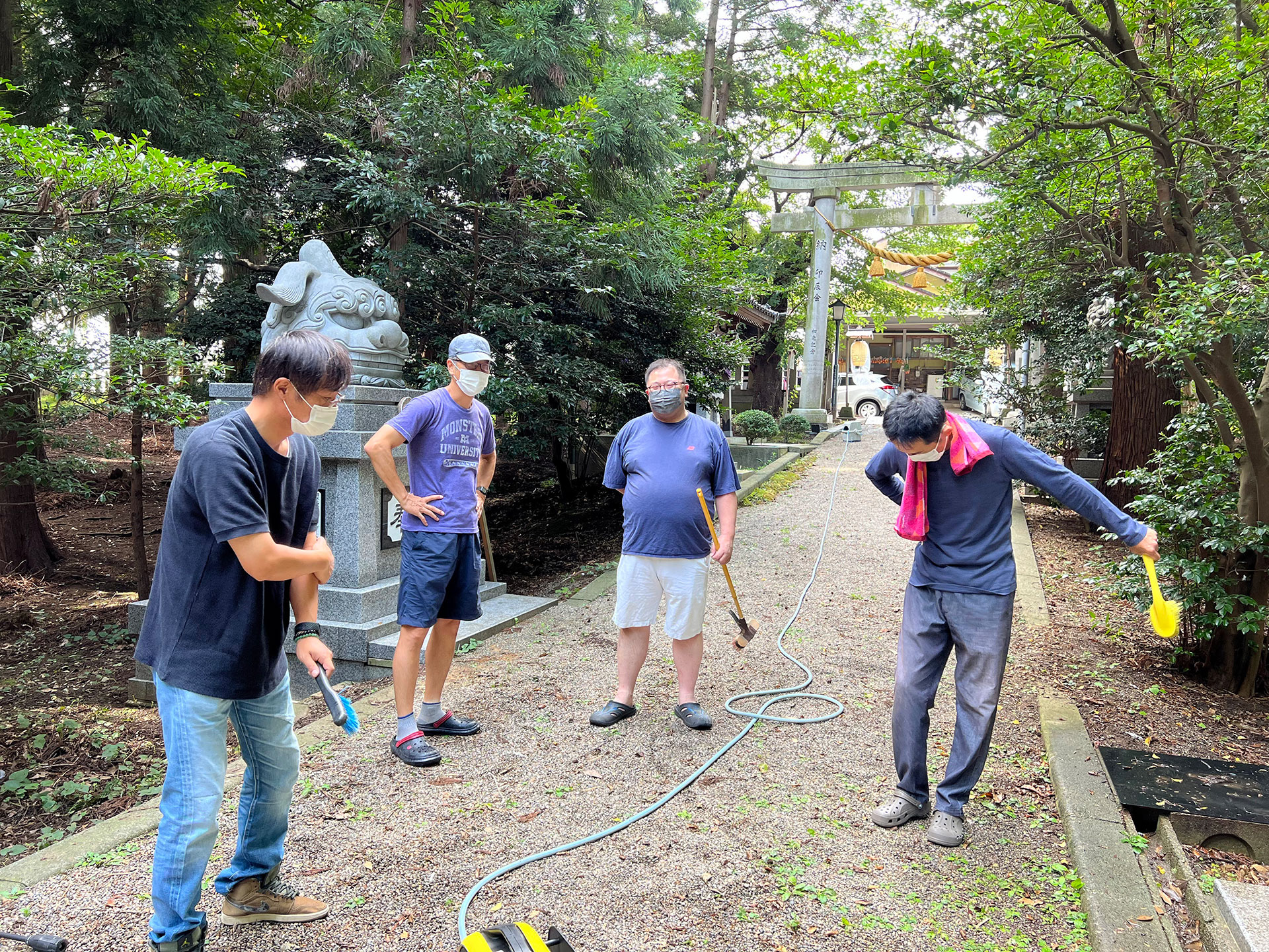 2022.08.28 【初老】奉納品掃除-2022/8/28(日)AM9時開始 ■日時:2022/8/29(日) ご参加いただいた皆様、お疲れ様でした。 AM9:00~掃除(奉納品前集合) (ほうき、デッキブラシもしくはタワシ、ホースをご用意ください)