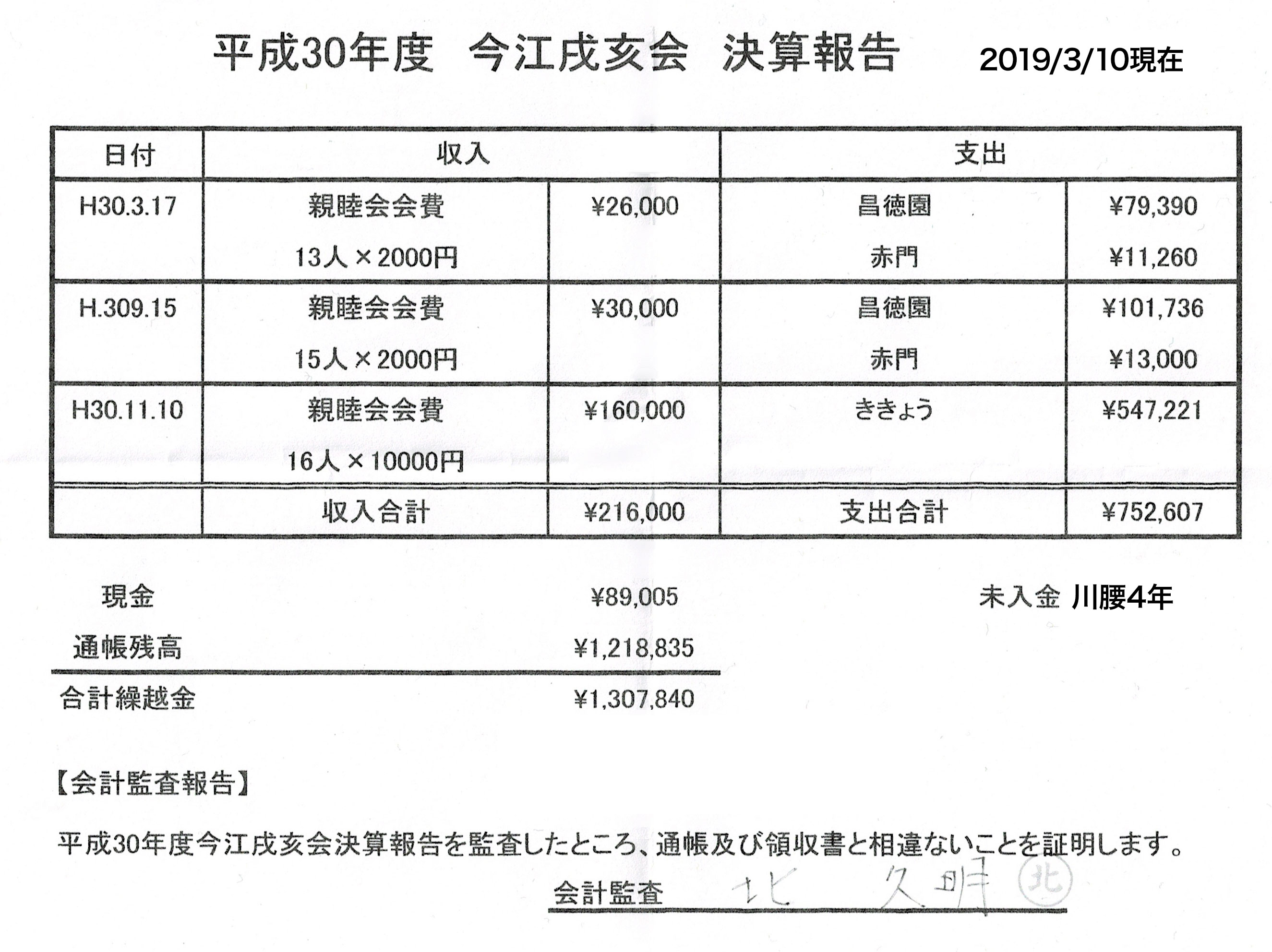 時期や仕切はH30年度役員へ一任いたしました(決算報告参加者全員一致)