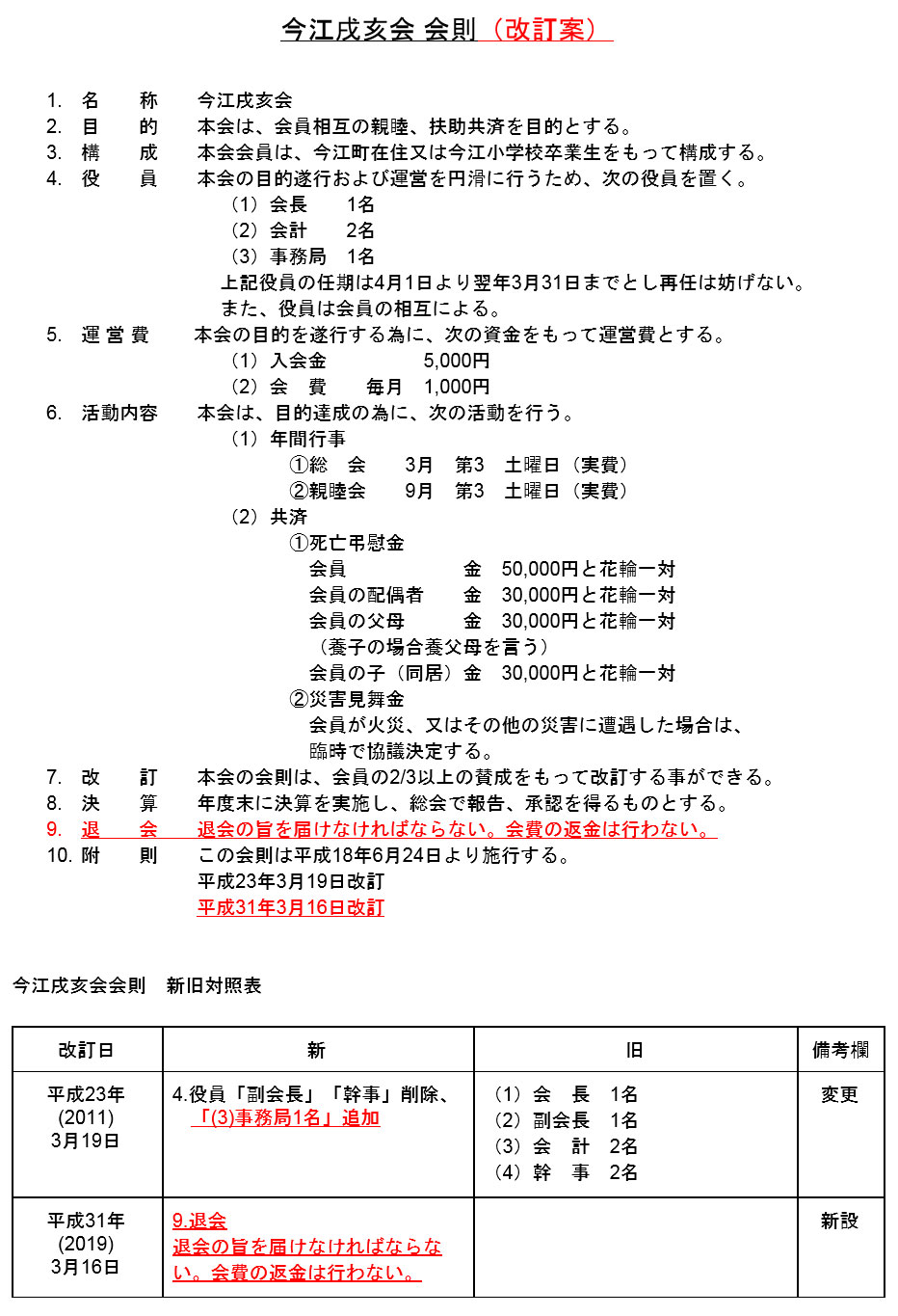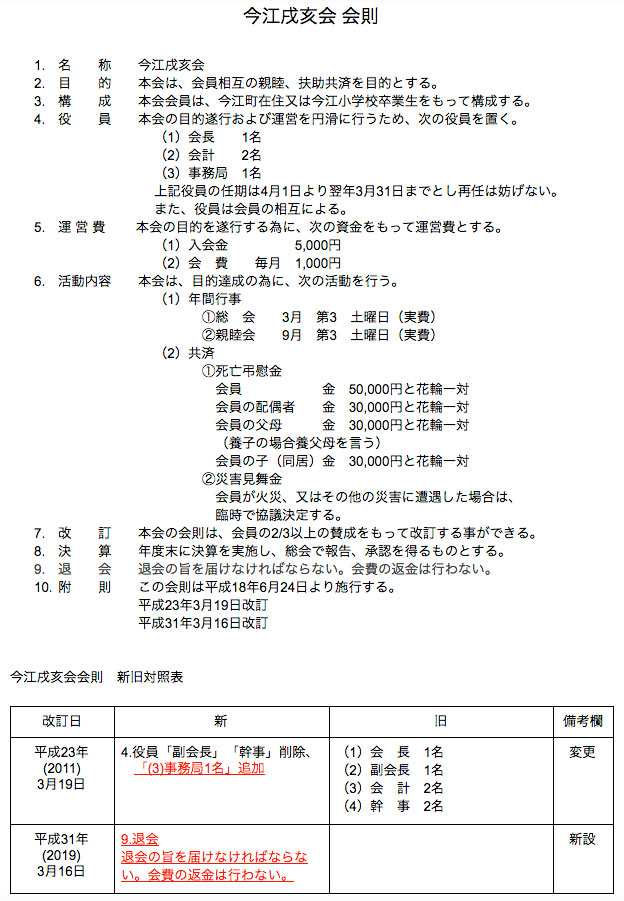 退会については、坪田君の時と同じで返金なし。未納3年分ですが返金なしと過去受領分もあるので不問で良いが当同年役員と私の意見です。あと、会からの慶弔がなくなるだけなので今後も個人的な関係はそのまま続けていこうと。